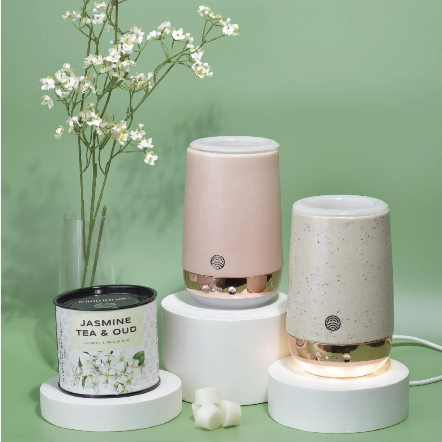 Aura Wax Warmers are handcrafted by ceramic artisans in India, and then seamlessly integrated with technology to create a warmer that is safe and convenient to use. Each piece is unique and doubles up as a timless piece of decor in your home.